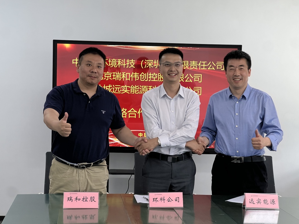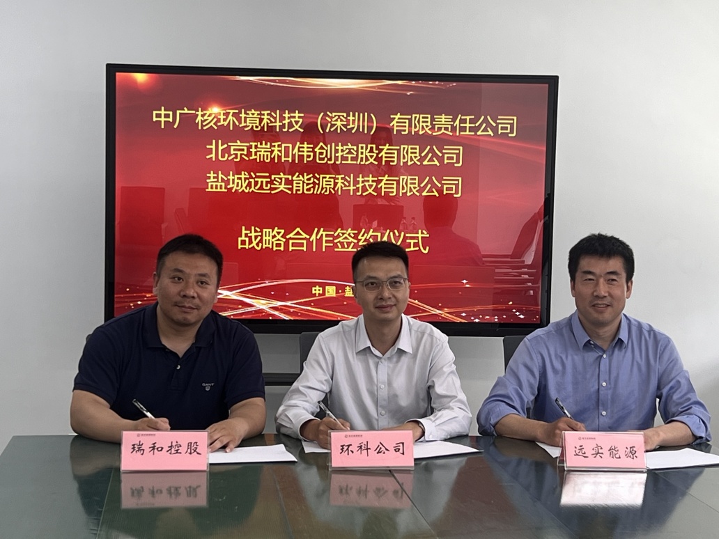 2025年5月28日,北京瑞和伟创控股有限公司(简称“瑞和控股”)、中广核环境科技(深圳)有限公司(简称“环科公司”)与盐城远实能源科技有限公司(简称“远实能源”)在江苏盐城签署战略合作协议。中广核环保产业有限公司党委委员、副总经理吕书宝,环科公司副总经理尤成懋,瑞和控股董事长于宝磊,远实能源董事长陈小海等出席签约仪式。